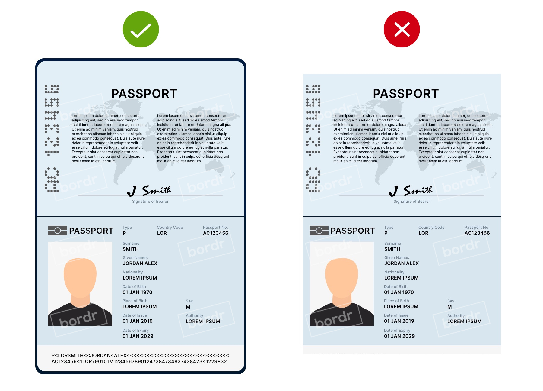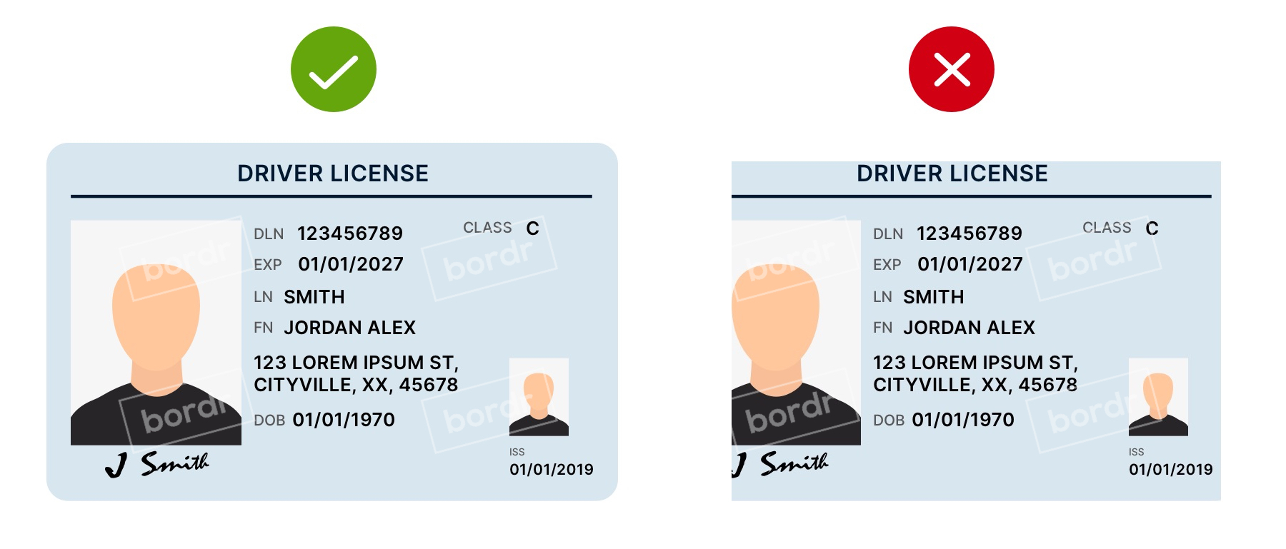 Requisito de upload de foto de identificação Certifique-se de que a foto de seu documento de identidade esteja nítida nos quatro cantos. Um bom exemplo é este: